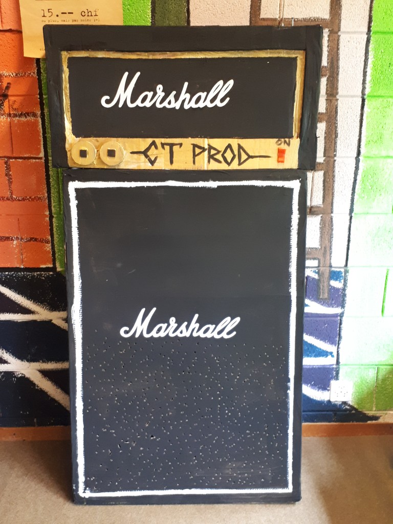 Un petit amplificateur Marshall CT prod en…carton. Ceci n’est pas un placement de produit! 😉 (Nolan)